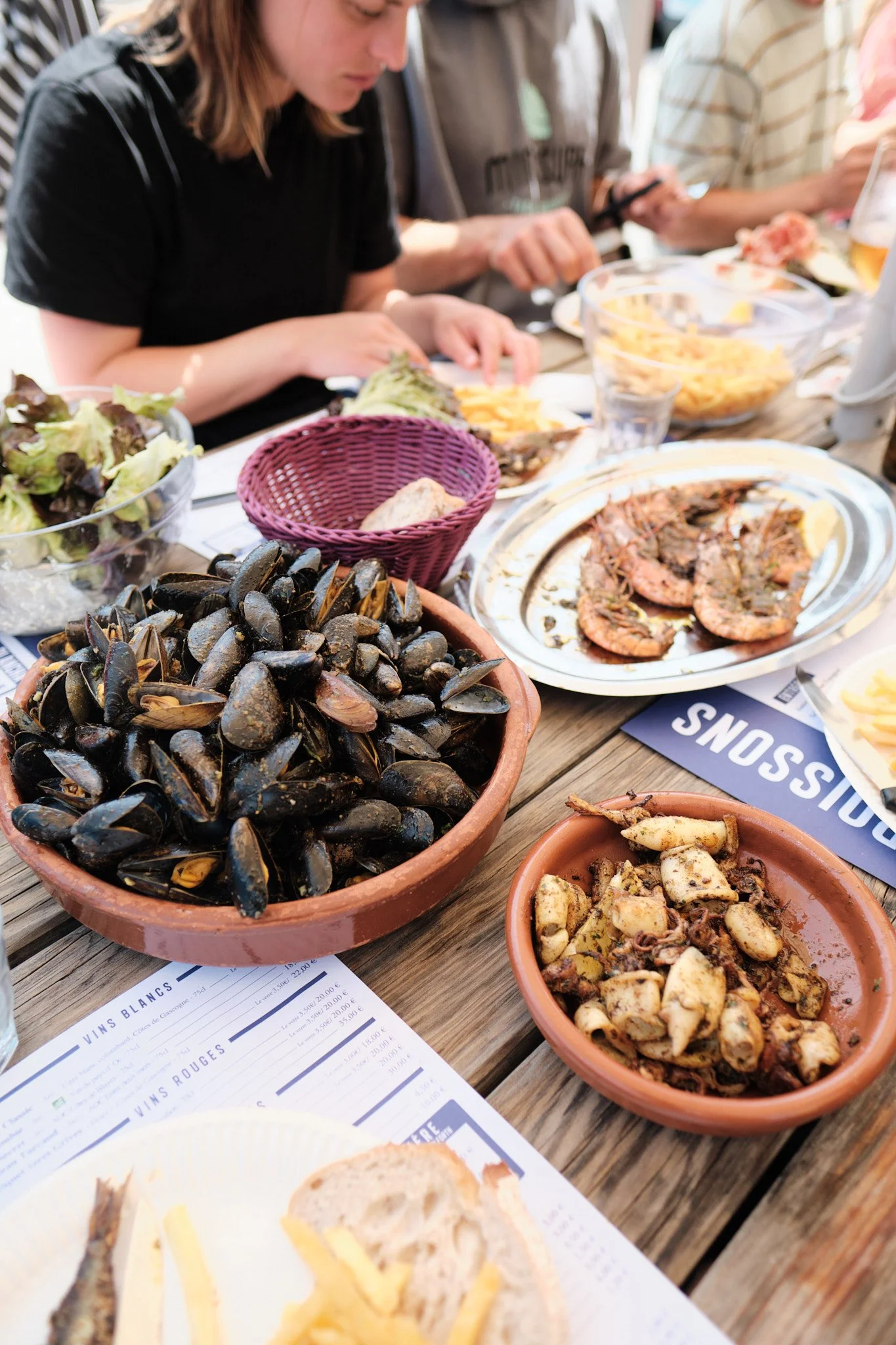 Capbreton harbour has its own atmosphere that feels different from Hossegor. It's a working port. There's a saltiness and a roughness to it that's worth the trip on its own. Chez Minus is the best seat in the house.
